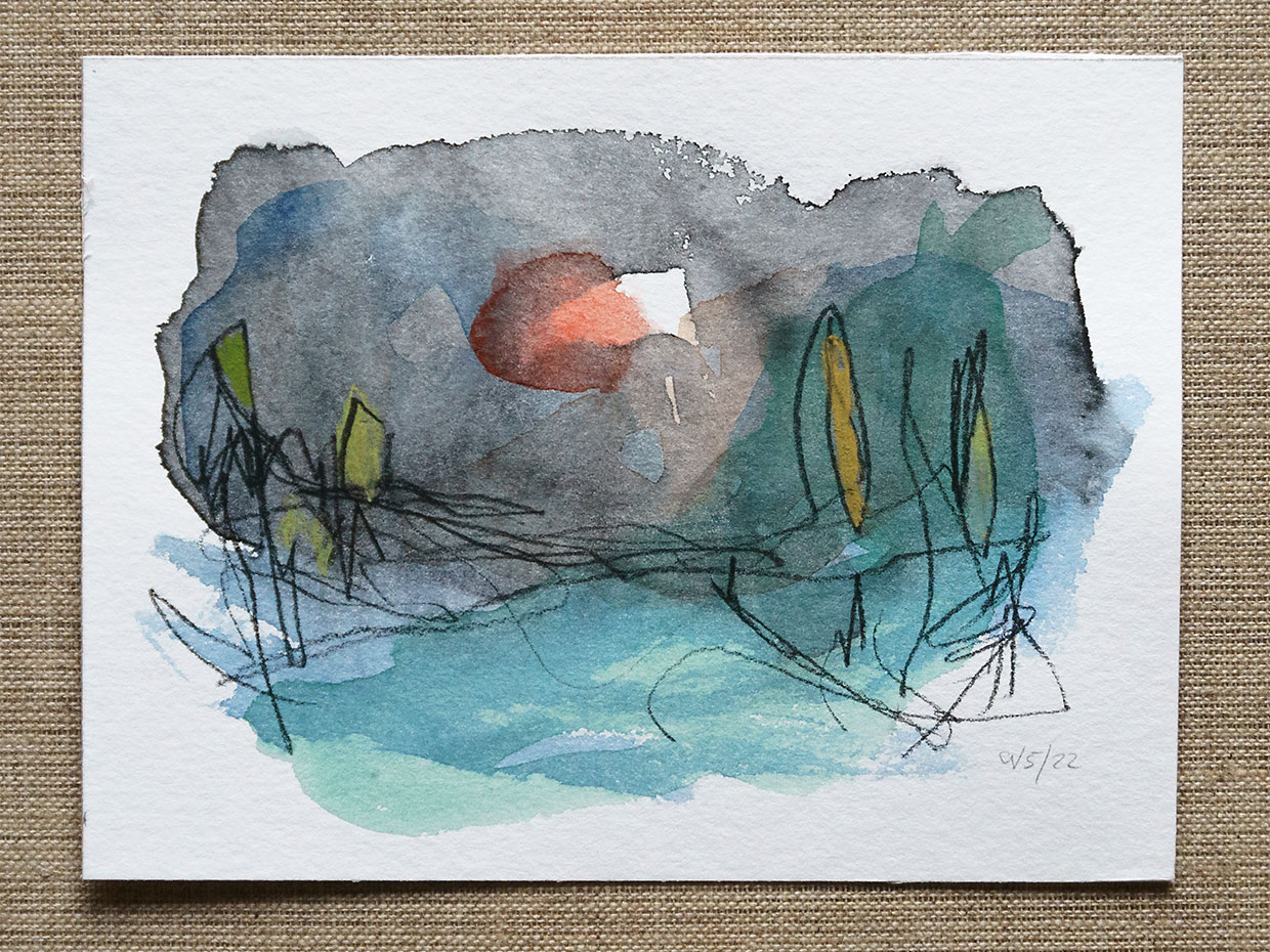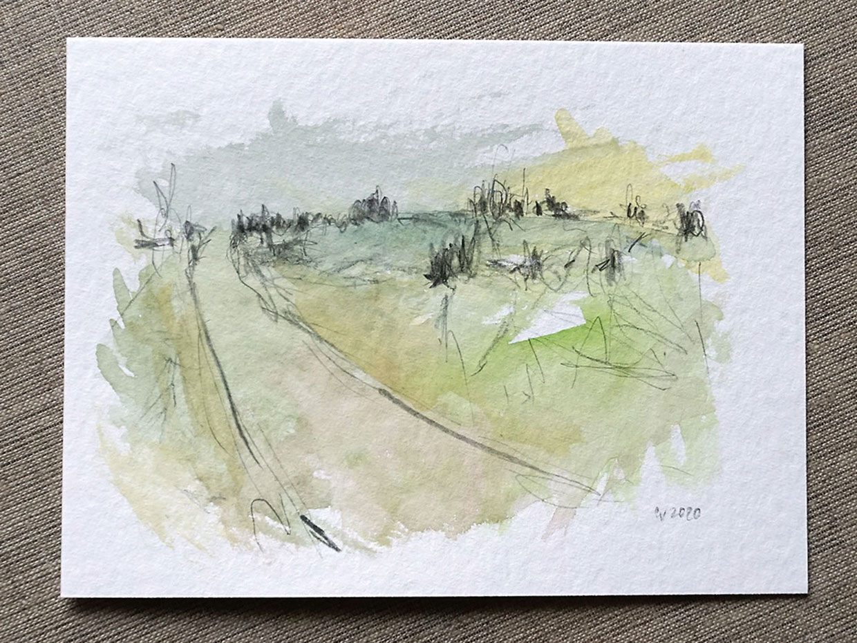 Unterwegs im November - Landschaftszskizze - Aquarell/Mixed Media auf Aquarellkarton - 2020 - 15 x 20cm Nach dem Meer - semiabstrakte Landschaftszskizze - Aquarell/Mixed Media auf Aquarellkarton - 2022 - 12 x 16cm